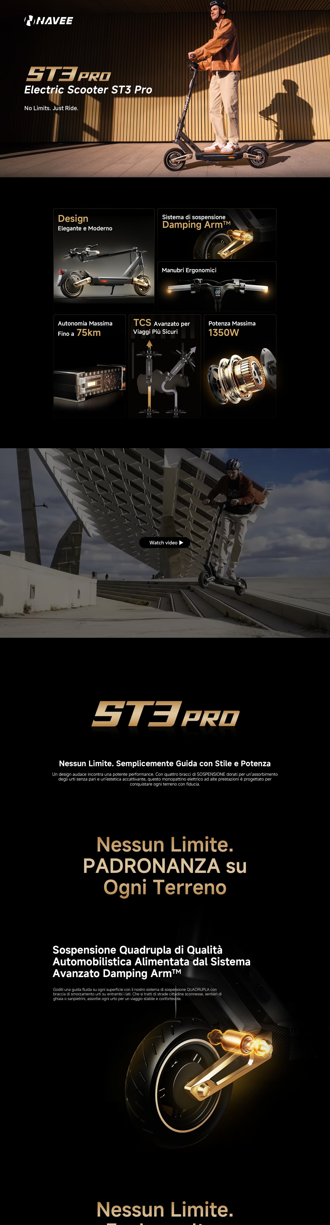 NAVEE ST3 Pro Electric Scooter 1350W Max Power 10 TubelessTire 597Wh Battery 12.75Ah 48 Max Range 75KM Front Drum+RearDisc+RearE-ABS Front and Rear Damping Arm Suspension Apple Findmy.