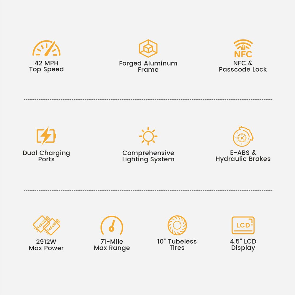 Ausom DT2 Pro Electric Scooter 52V 23.4Ah Battery, 1100W*2 Motor, 68Km/h Max Speed, 115 km Range, Dual Swingarm Suspension, Dual Disc Brakes, NFC Passcode Lock.