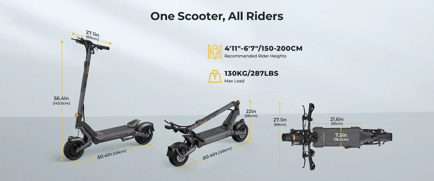 Ausom L2 Max Dual Motor Electric Scooter 1000W*2 90KM Range 65Km/h Max Speed 48V 20.8Ah Battery