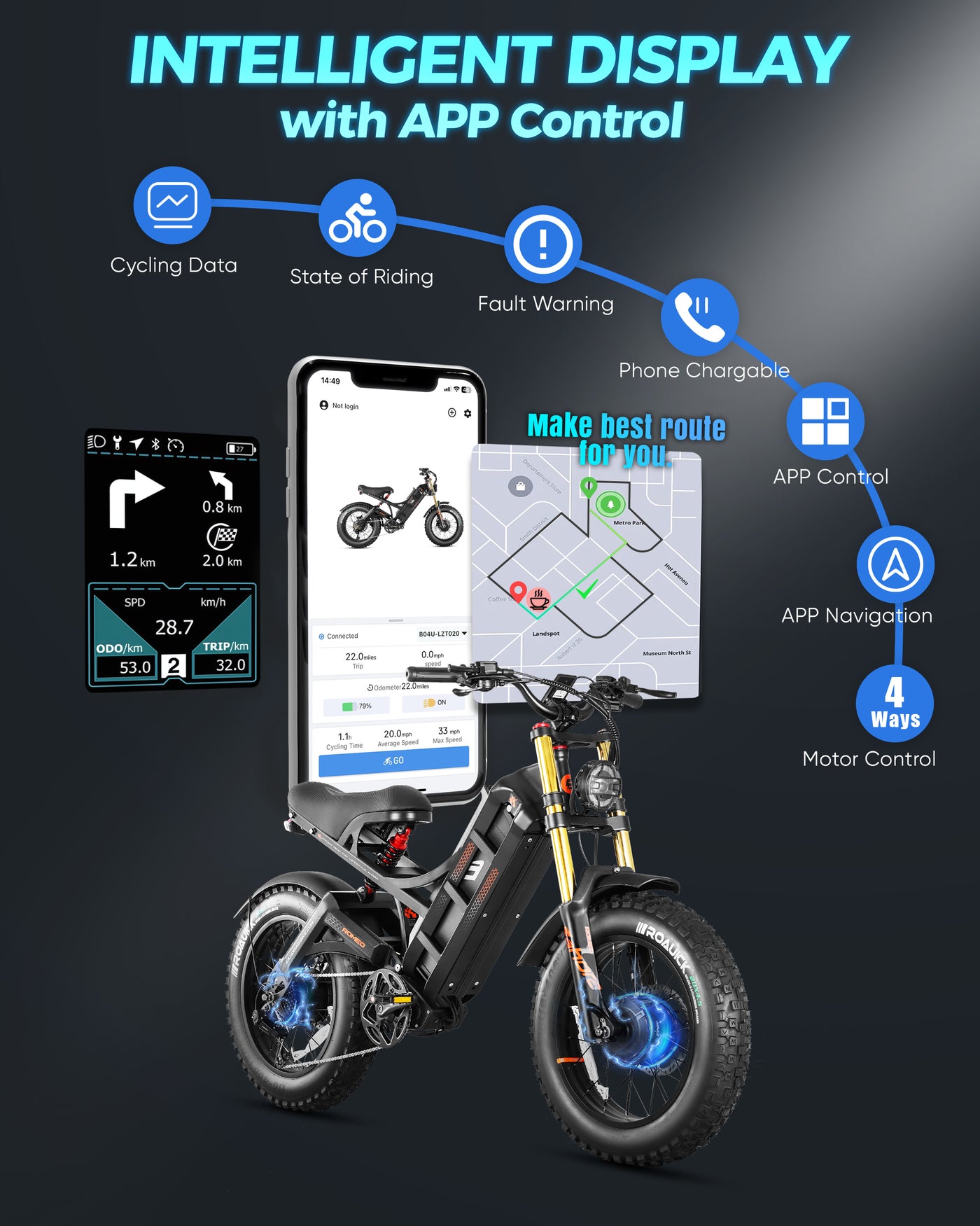 Eahora Romeo II Electric Bike 1250W*2 Dual Motor 120KM+ Range 200Nm Torque