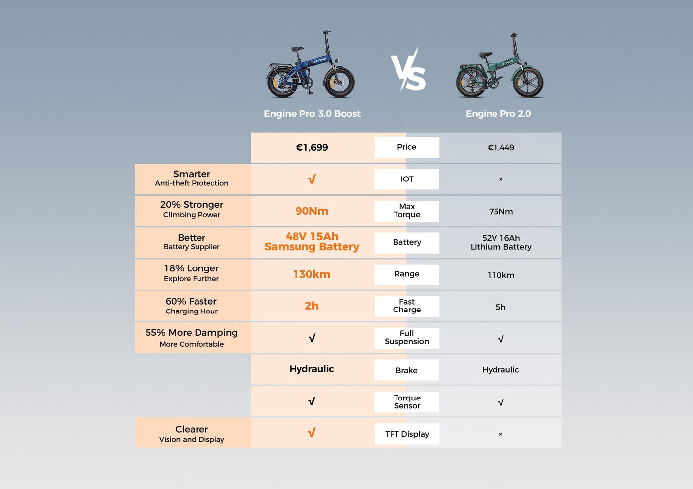 Engine Pro 3.0 Boost Folding Electric Bike 20*4.0" Fat Tires 250W Motor E-Bike 48V 15Ah Battery 25Km/h Max Speed 130KM Range Hydraulic Brake 150KG Max Load App Control