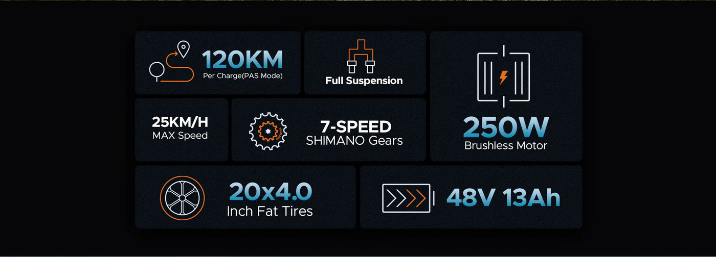 ENGWE Engine X Electric Bike – 250W motor, 48V 13Ah removable battery, 25 km/h max speed , 100KM range, full suspension & 20x4.0 fat tires for smooth off-road & city riding.