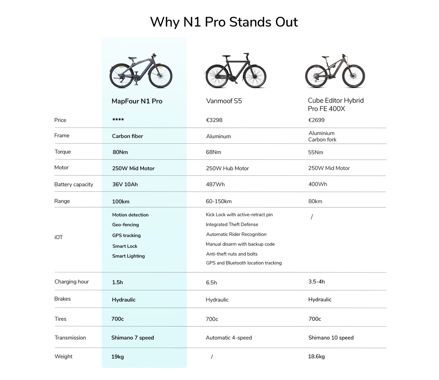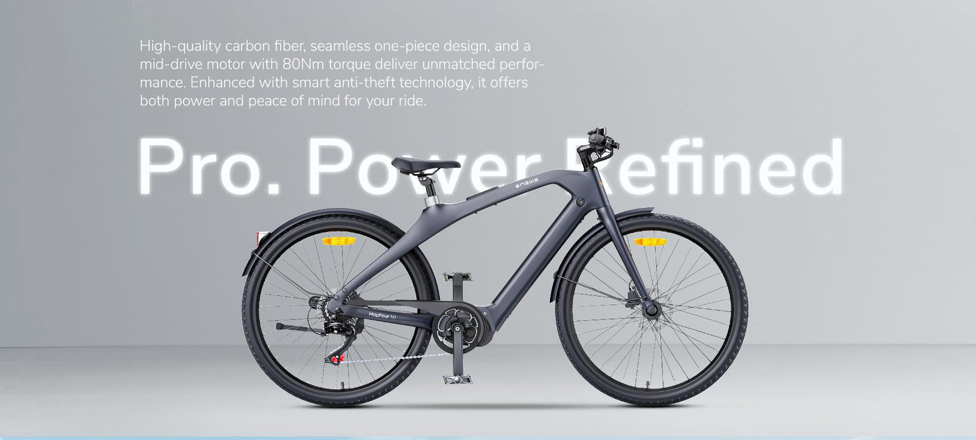 ENGWE MAPFOUR N1 PRO Electric Bike 250W Mid-drive Motor, 80Nm Torque Carbon Fiber City E-bike.