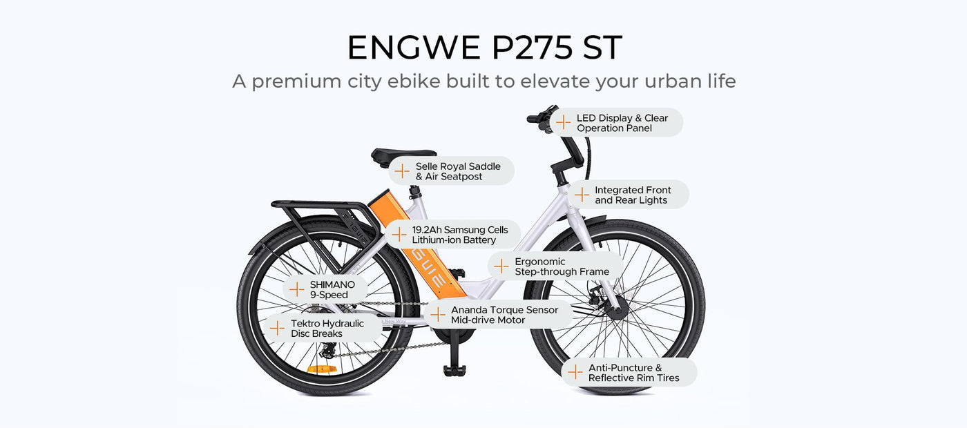 ENGWE P275 ST Electric bike. 250W 260 km Ananda Torque Sensor Mid-drive Motor Commuting Electric Bicycle