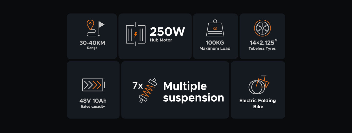 ENGWE T14 Folding Electric Bike 250W Hub Motor Multiple Suspension