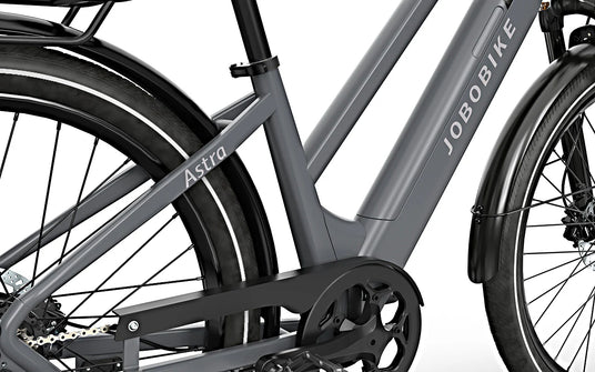 The JOBOBIKE Astra features narrow 27.5" tires and automatic sensor brake lights for an extremely comfortable riding experience. It also features adaptive pedal-assist technology, which can increase pedaling speed and reduce effort, especially on hills or long-distance rides, making it ideal for commuters, fitness enthusiasts, and recreational cyclists.