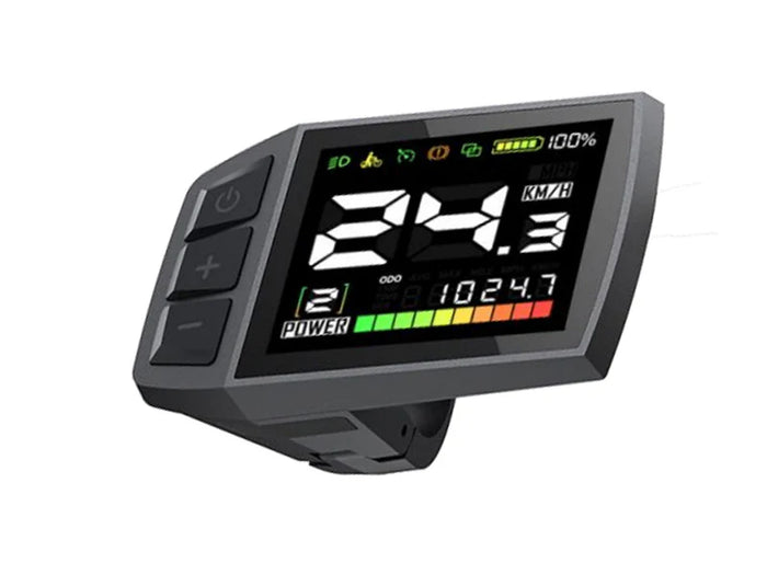 The display features Bluetooth connectivity, allowing riders to pair it with a mobile app to monitor real-time vehicle status, including battery level, speed, and mileage. It also supports smart navigation and personalized settings, enhancing the riding experience and safety, and simplifying bike management and maintenance.