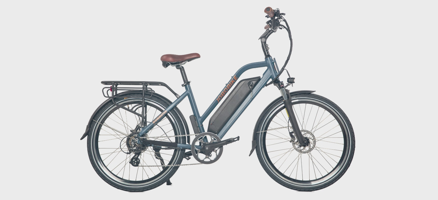 JOBOBIKE Commuter Electric Bike – 250W motor, 36V 18.2Ah Samsung battery, 90KM range, step-through frame & Shimano 7-speed for safe, comfortable city rides.