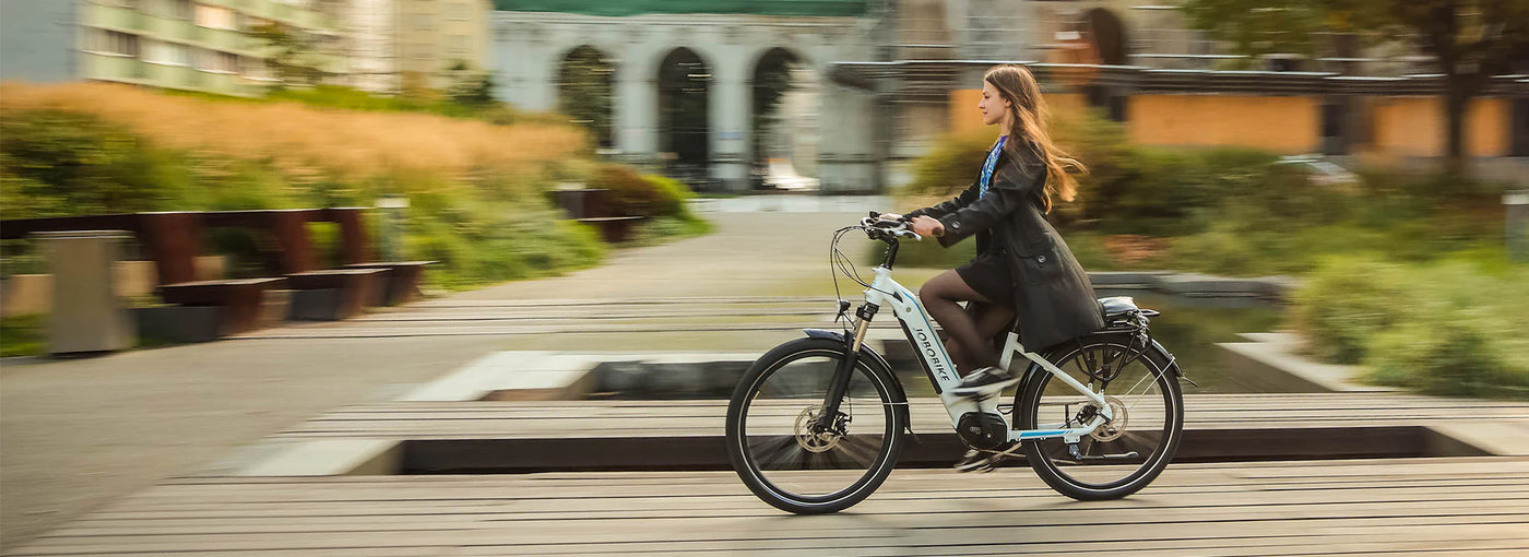 JOBOBIKE Linda Electric Bike – 250W Bafang motor, 36V 14Ah LG battery, 90KM range & step-through frame. Designed for women’s comfort and city commuting.