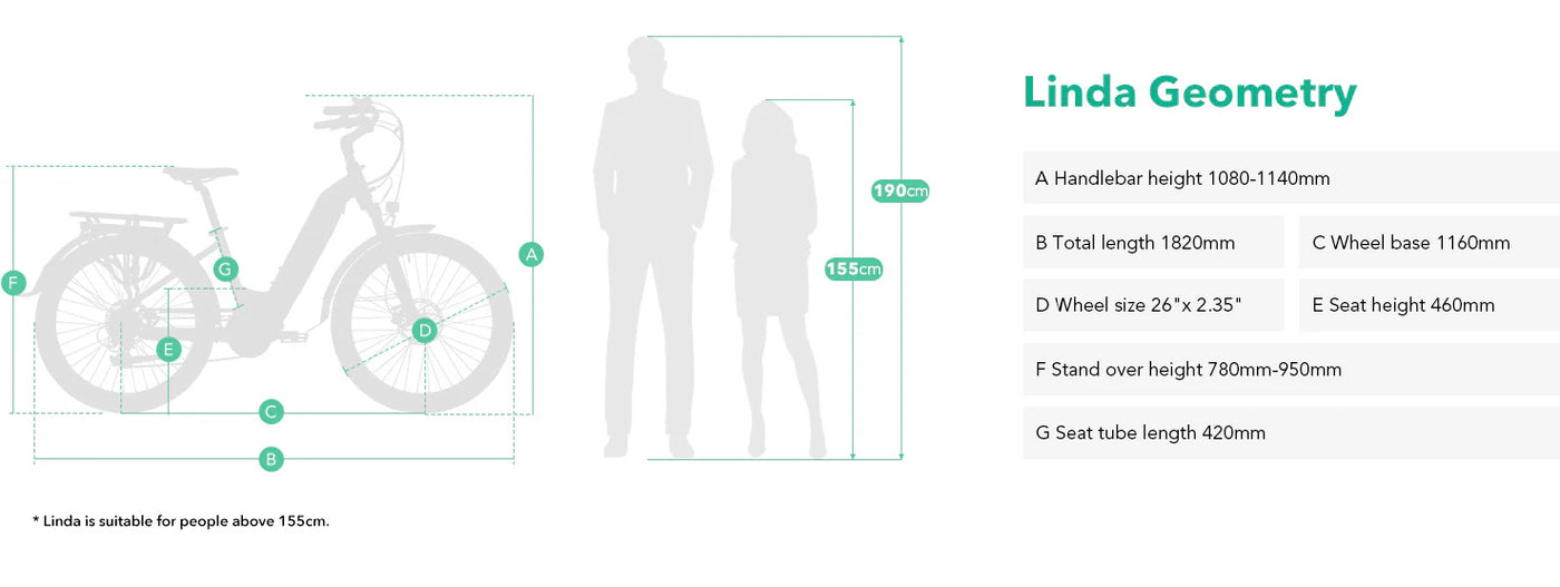 STEP-THROUGH FRAME DESIGNJOBOBIKE Linda has a step-through frame design, friendly to women and seniors. It allows them to easily pass through the frame, and it will not be difficult for women who wear a dress to ride it.