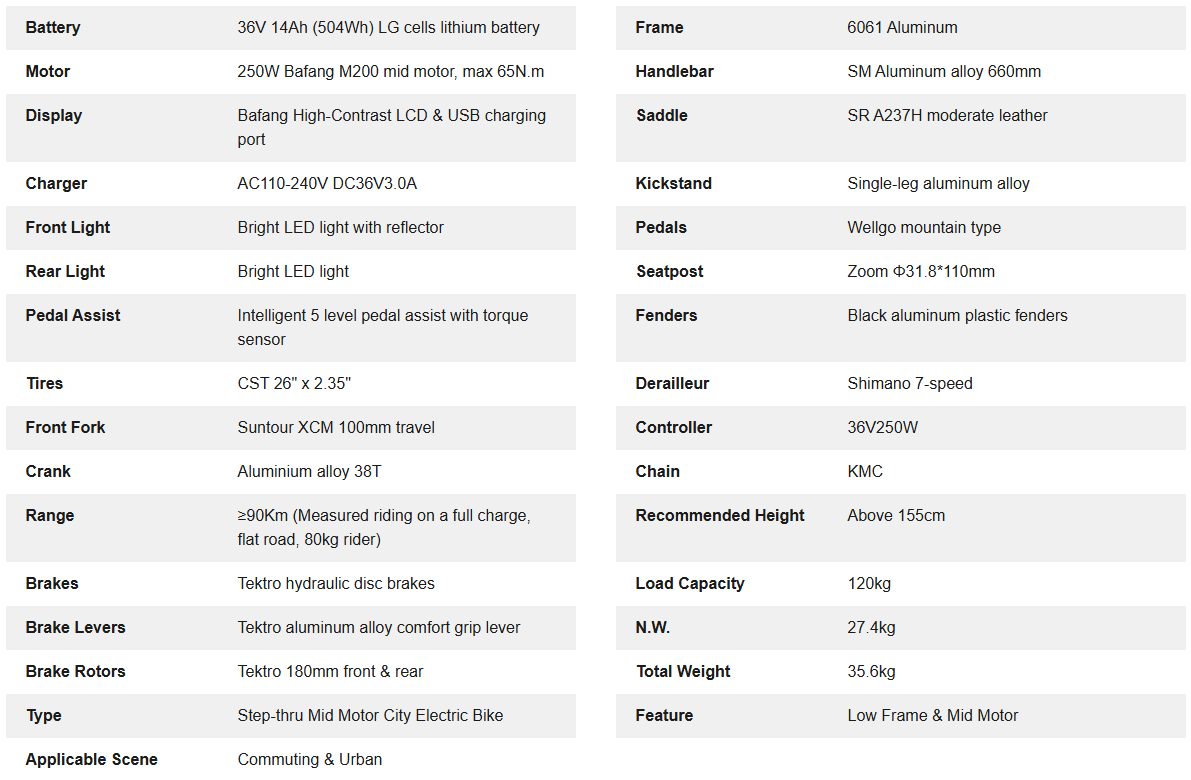 CST TiresUses CST 26" x 2.35" tires, offers excellent puncture protection and provides exceptionally good handling and grip, a smooth and comfortable feel that might be desired by some riders.