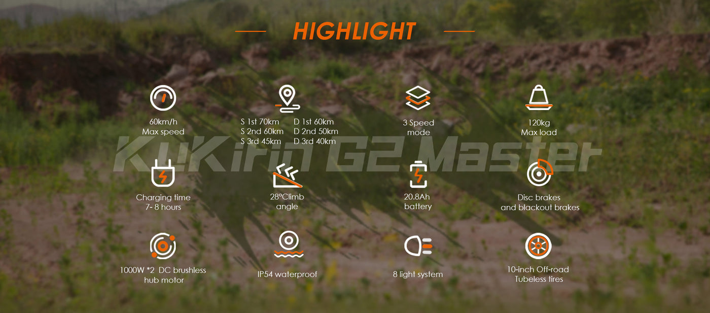 KuKirin G2 Master Electric Scooter 1000*2W Motor 70KM Range 60Km/h Max Speed 52V 20.8Ah Battery