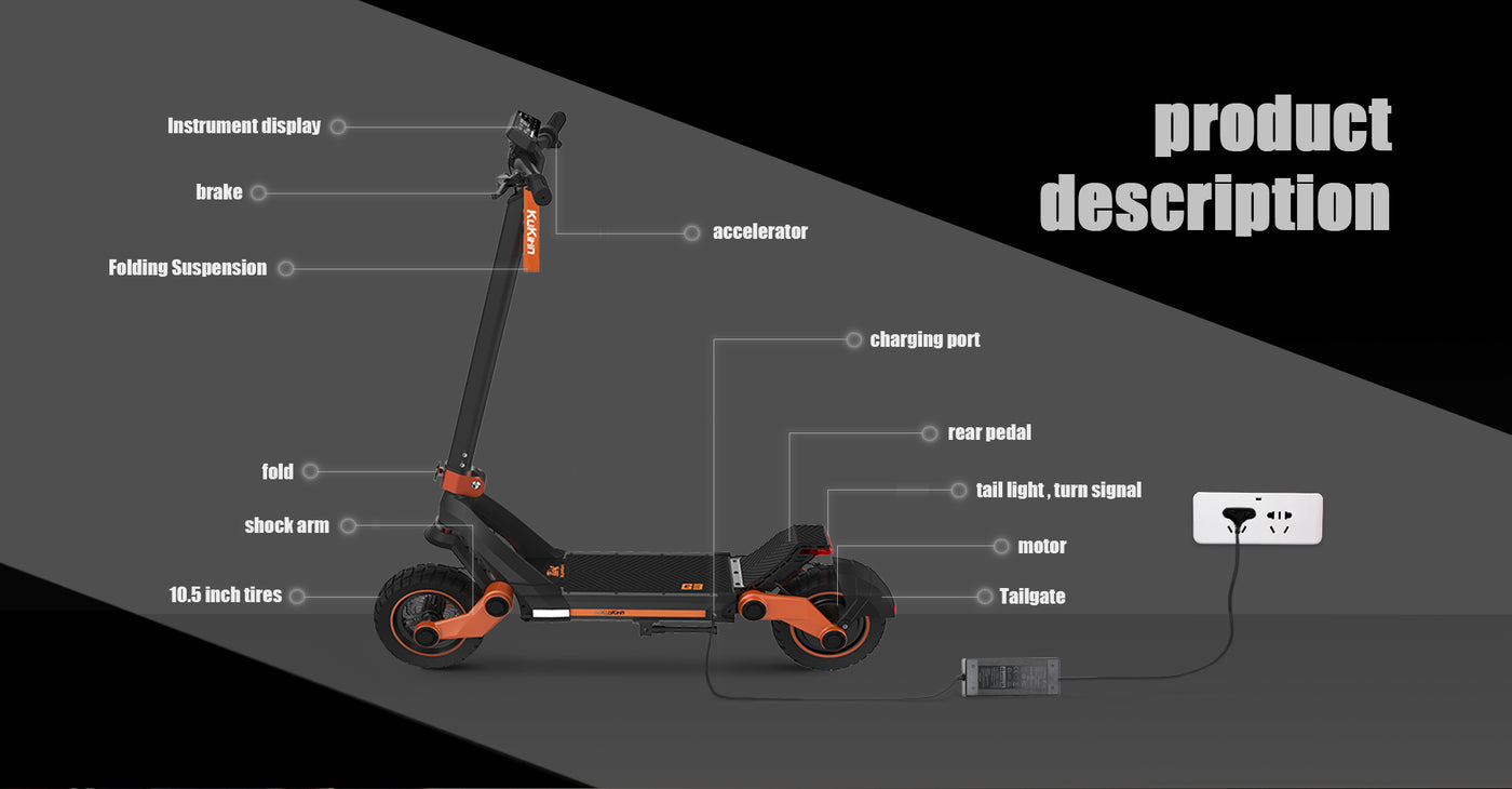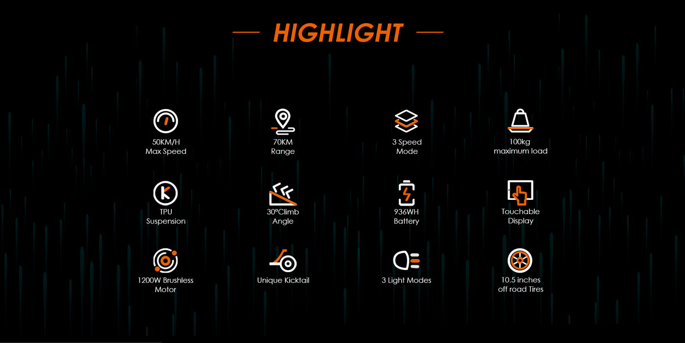 KuKirin G3 Electric Scooter 10 Inch Off-road 1200W Motor 52V 18Ah Lithium battery Max Speed 50km/h LED Touch Display, Shock arm Suspension 70km Max Range IP54 Waterproof 6-Lights