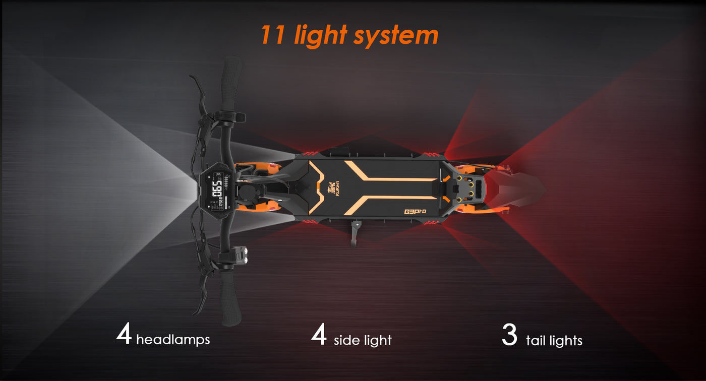 KuKirin G3 Pro 1200W*2 Motor Off-Road Electric Scooter 10 Inch Tire 52V 23.4Ah Removable Battery 80km range 65km/h Max Speed Dual Hydraulic Shock Absorber system IP54 Waterproof Dual Hydraulic Brake.