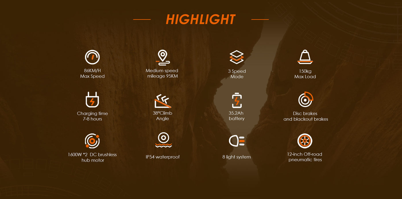 KuKirin G4 Max Off-road Electric Scooter, 1600W*2 Dual Motor 86km/h Max Speed 12-inch Tire 60V 35.2Ah 2112Wh Removable Battery 95km Range Hydralic Brake 38° climb 8 Light system Hydraulic damping absorption IP54 Waterproof