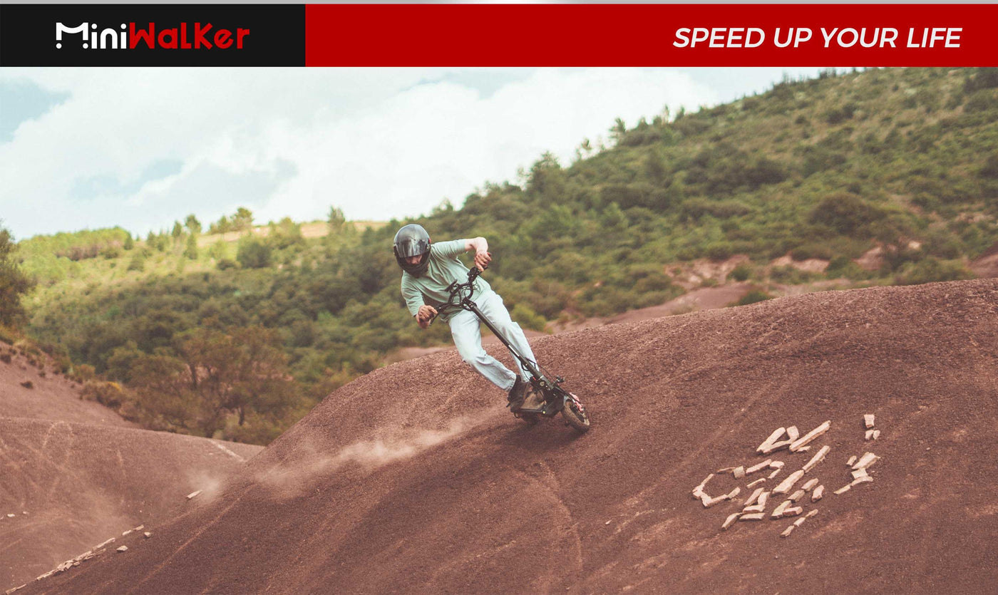 Miniwalker Tiger 10 Pro+ Dual 1200W motors, 60V 24Ah battery, 75KM/H speed, 75KM range, hydraulic brakes, RGB lights & full suspension for extreme performance.