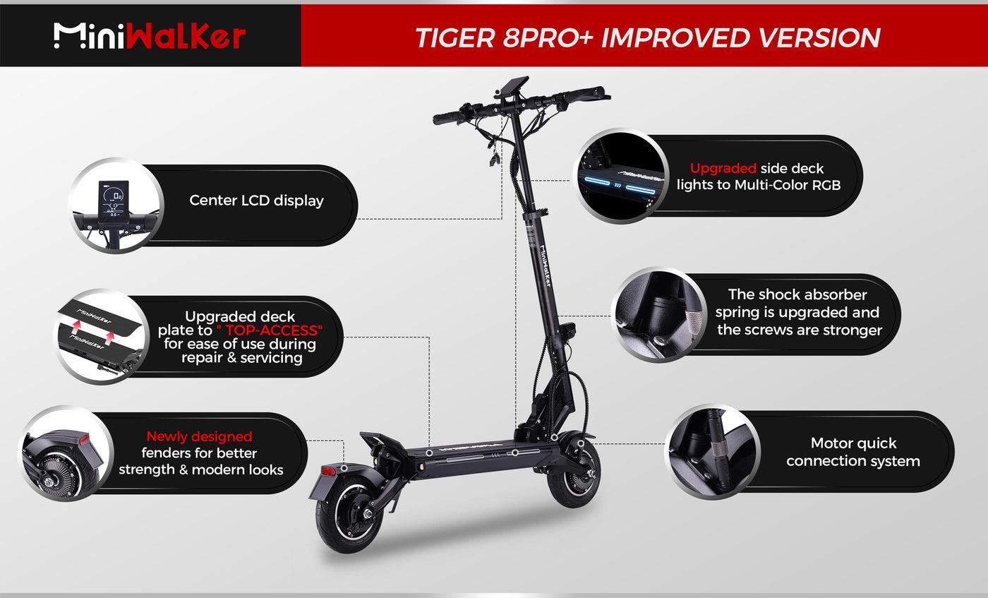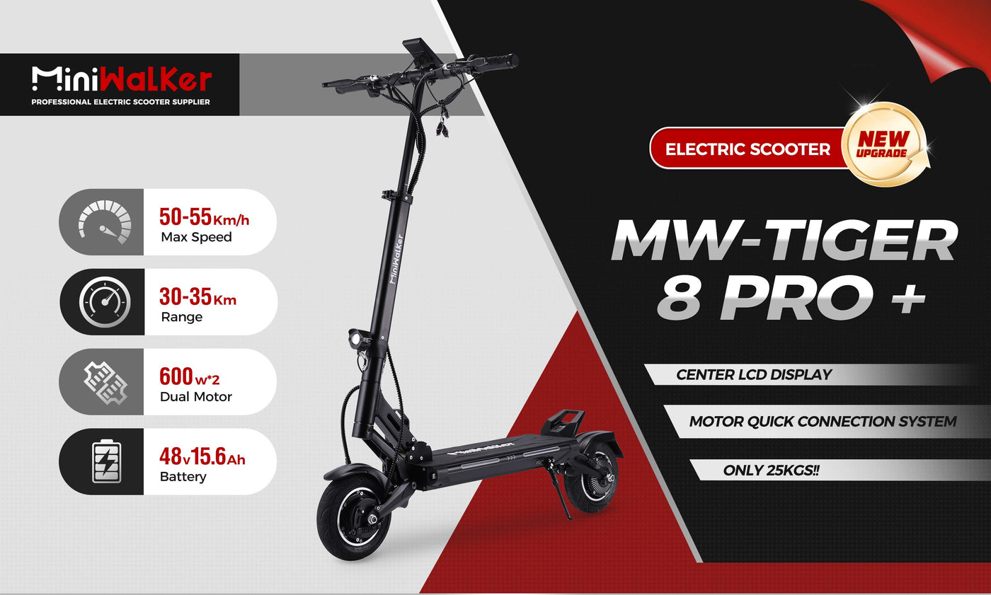 Miniwalker Tiger 8 Pro+ Electric Scooter 600W*2 Motor 50Km/h Max Speed 45KM Range