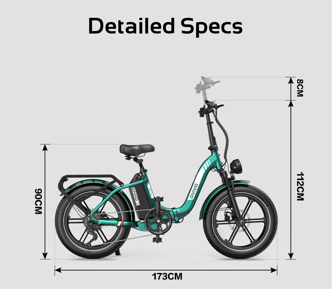 OVIVO C2 Pro Folding Electric Bike 250W 120KM Range 48V 18Ah Battery 20x4.0" Fat Tire