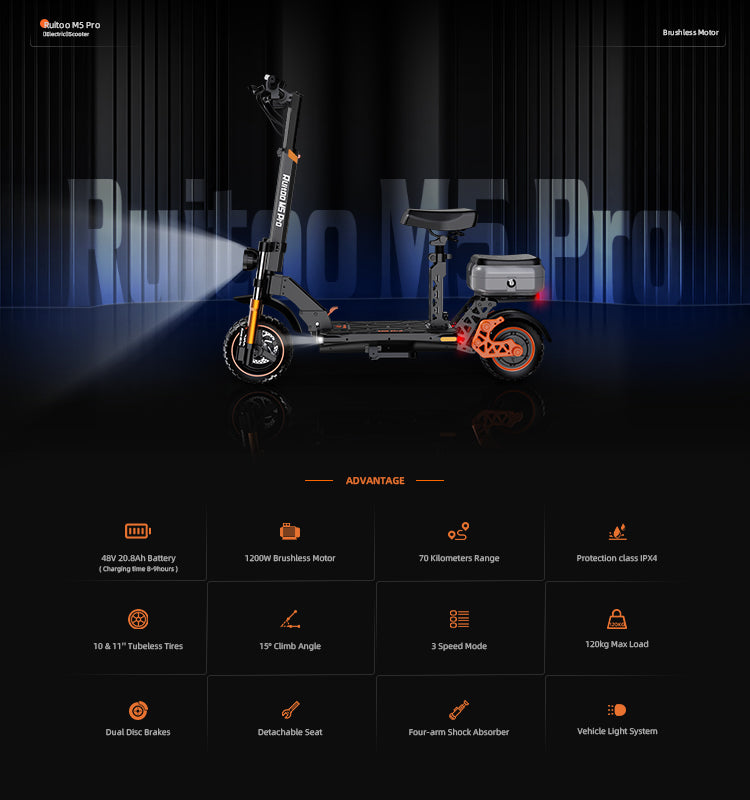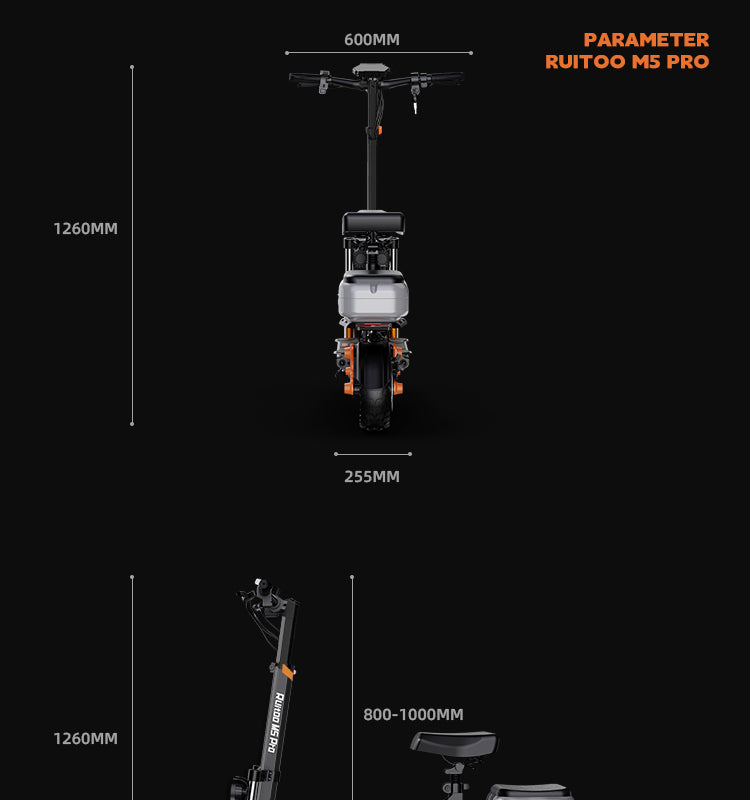 RUITOO M5 PRO Electric Scooter with seat and box 1200W 60KM Range 48V20.8AH Battery is backordered and will ship as soon as it is back in stock.