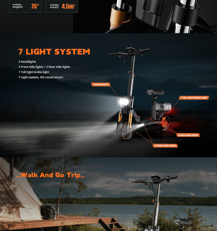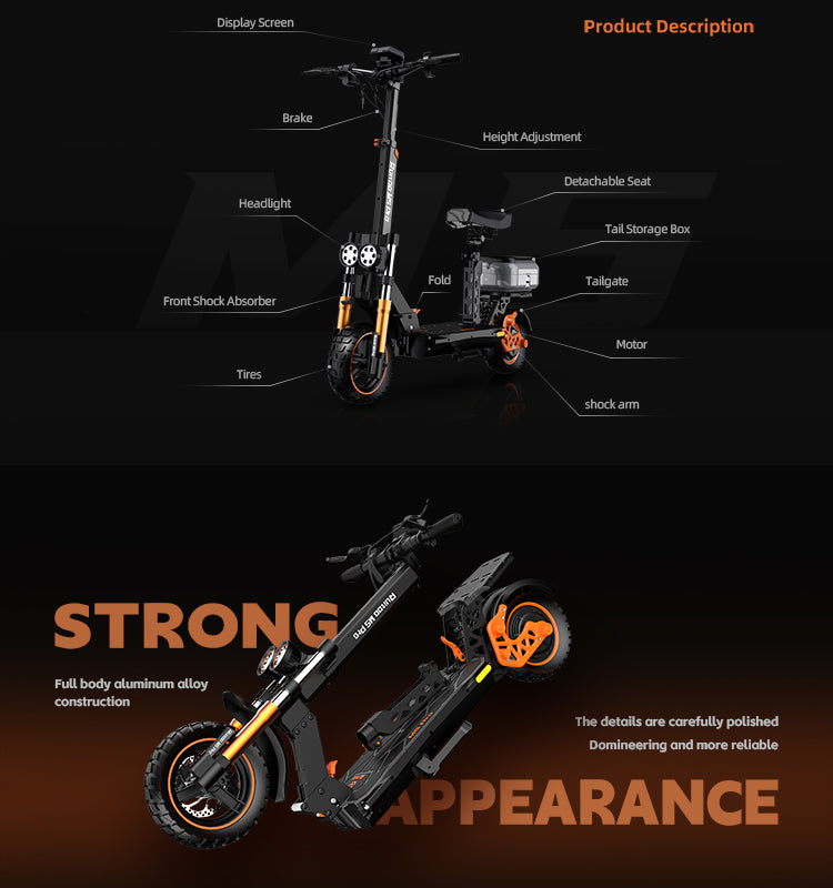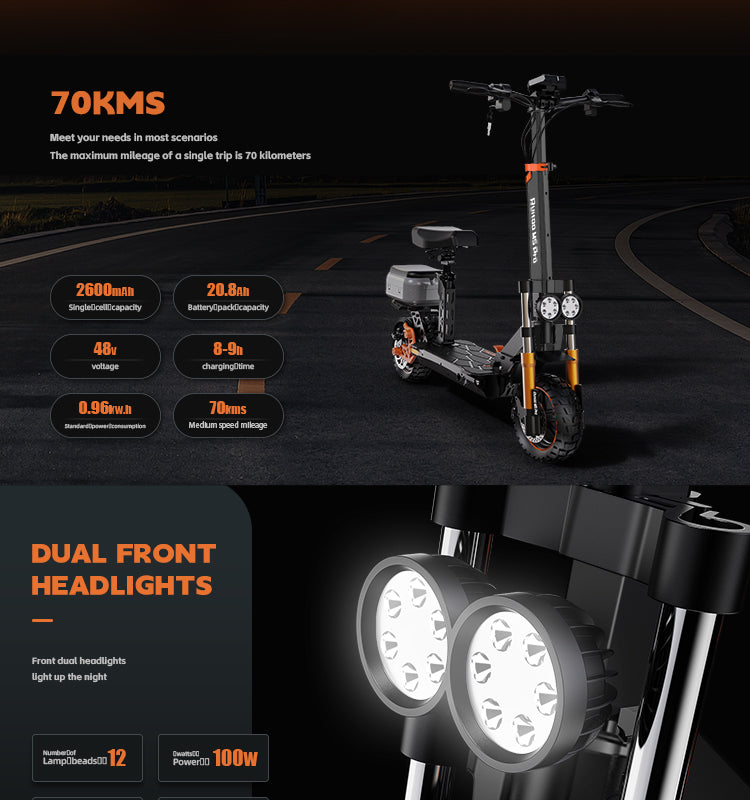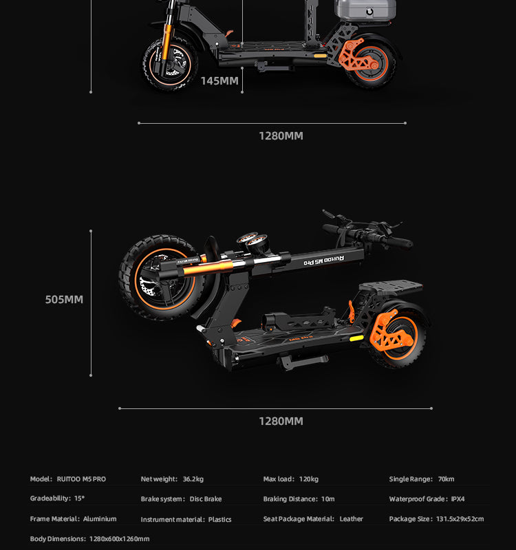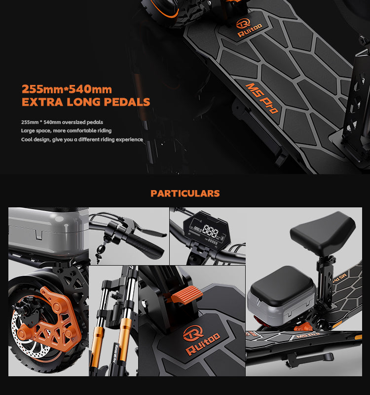 RUITOO M5 PRO Electric Scooter with seat and box 1200W 60KM Range 48V20.8AH Battery